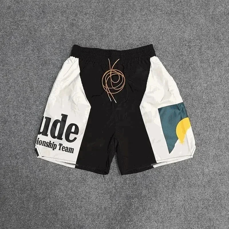 4.Rhude Colorblock Sunset Lettering Print Beach Shorts ( 32 styles)-0786