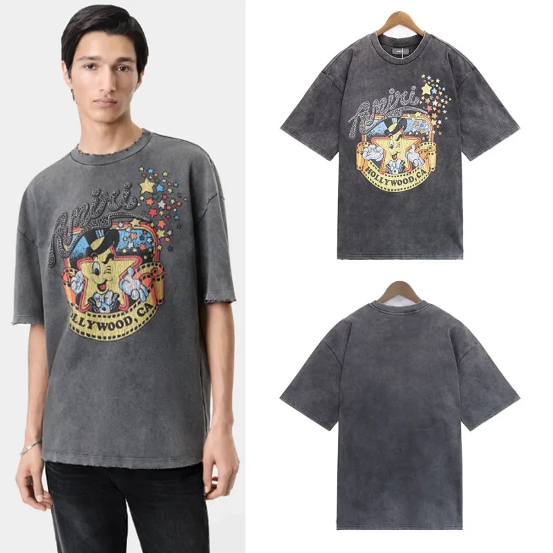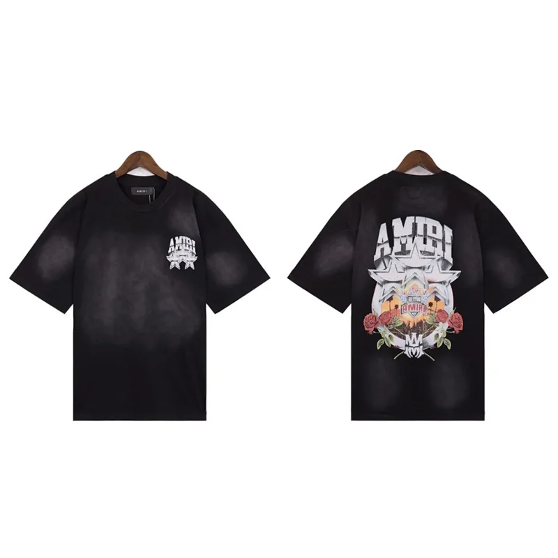 Amiri washed vintage unisex loose casual T-shirt-1617