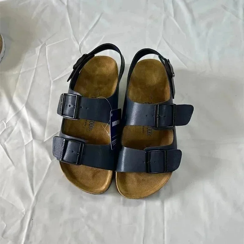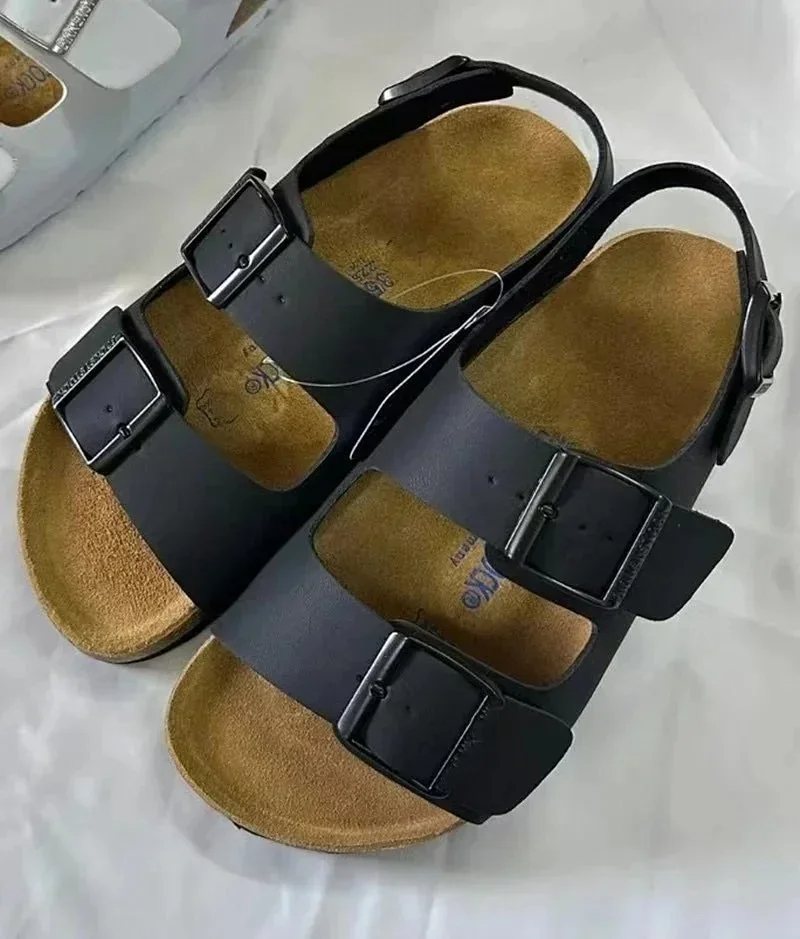 BIRKENSTOCK Lazy men's and women's double buckle flat slippers genuine leather cork footbed comfortable outdoor sandals-2342