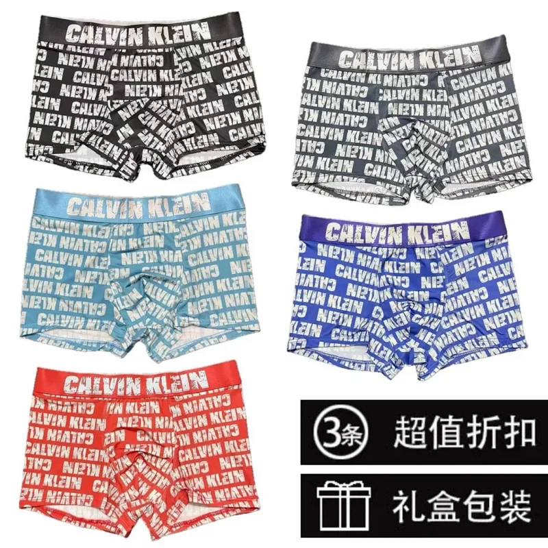 Calvin Klein CK Men's stylish full body logo print breathable briefs Boxer briefs Underwear Shorts 3pcs-2420