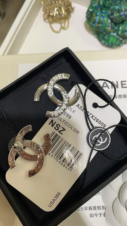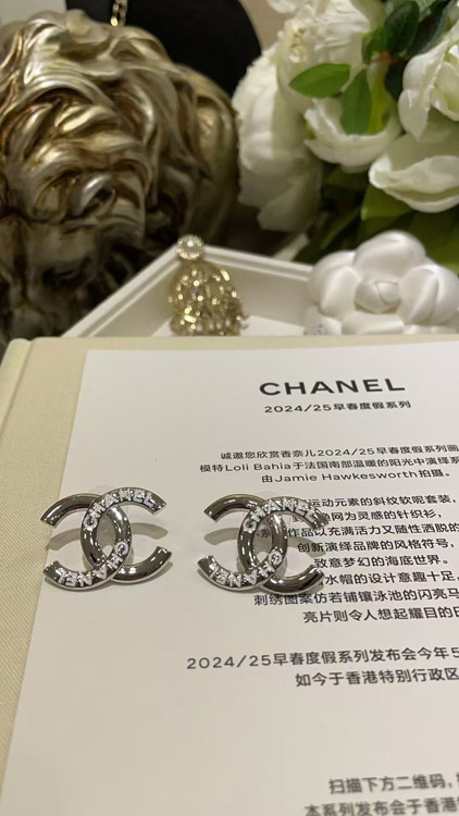 Chanel White Enamel Double C Silver Earrings-3743