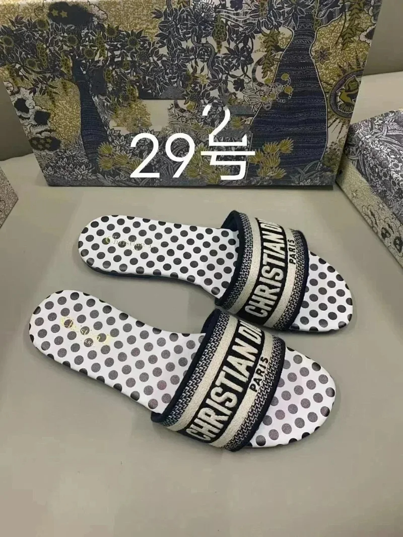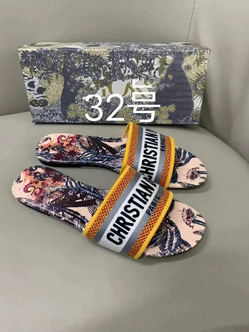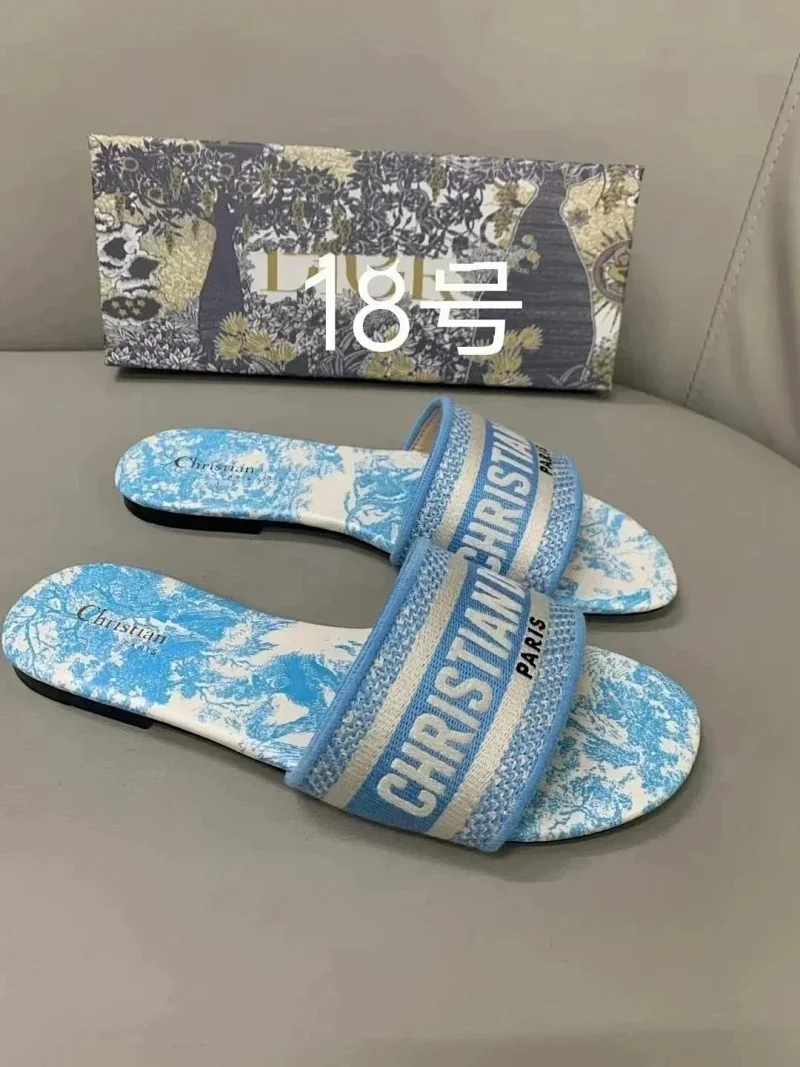 Home > Dior 2025 new summer genuine leather letter embroidered outerwear women's slippers-2336