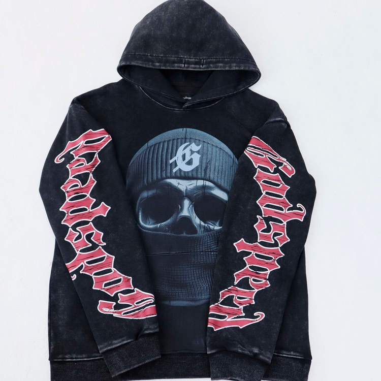 Home > Godspeed Masked Print Washed Distressed Hooded Sweatshirt-4560