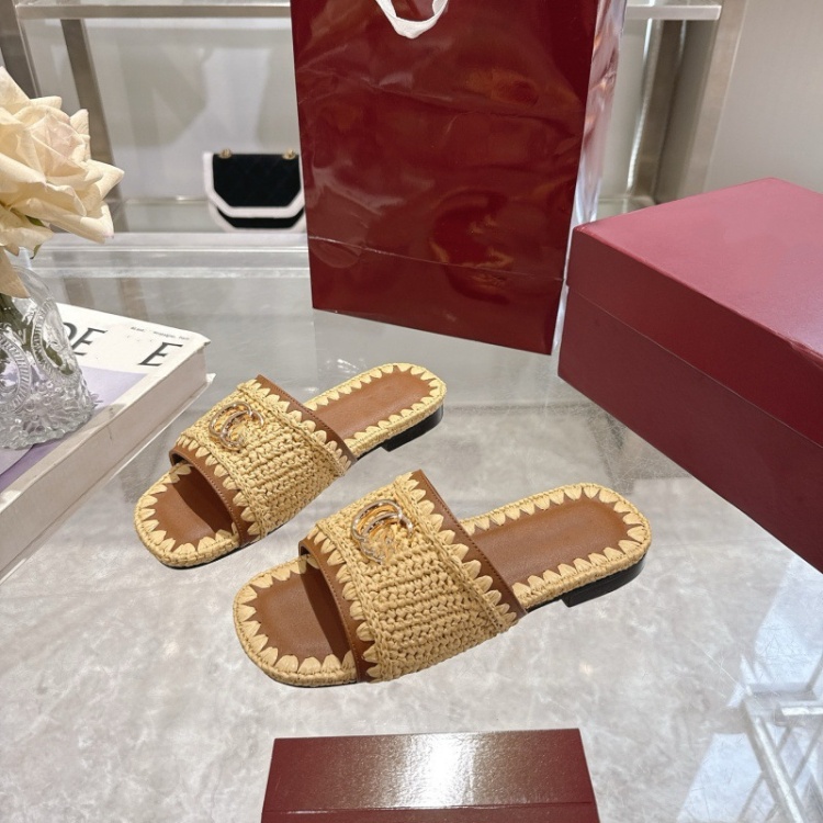 Gucci new handmade woven slippers with metal buckle-5756