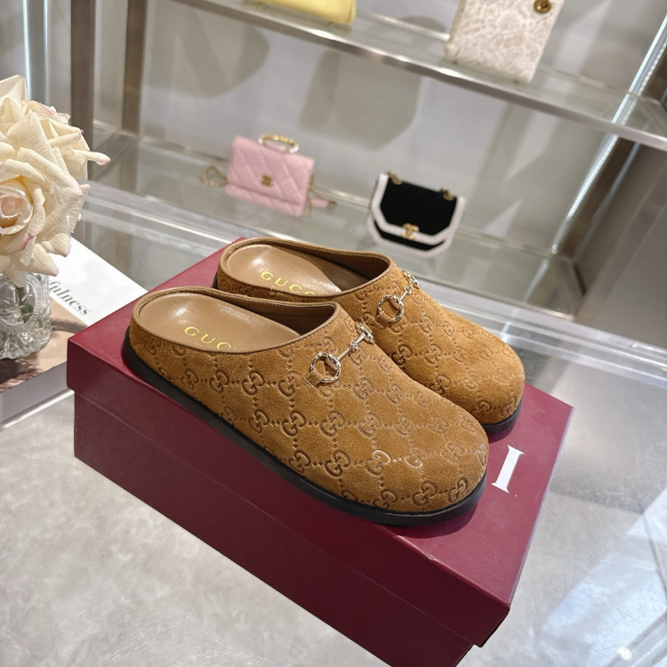 Gucci new round-toe horsebit buckle flat mules-5749