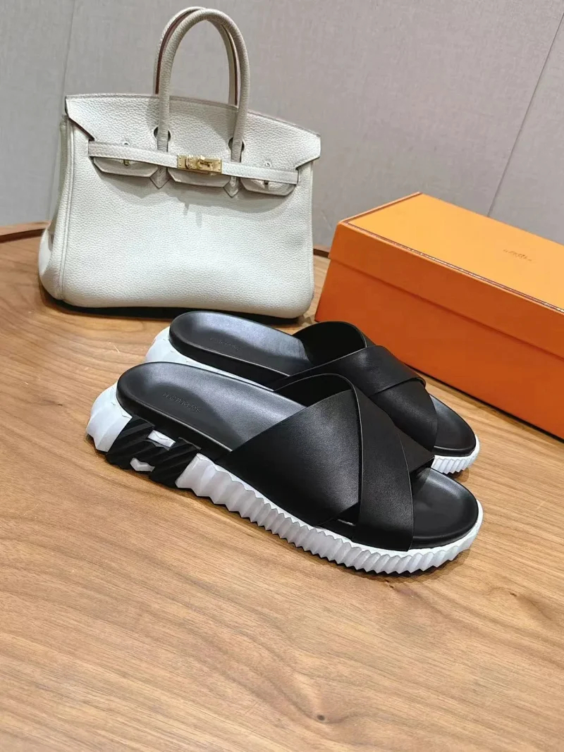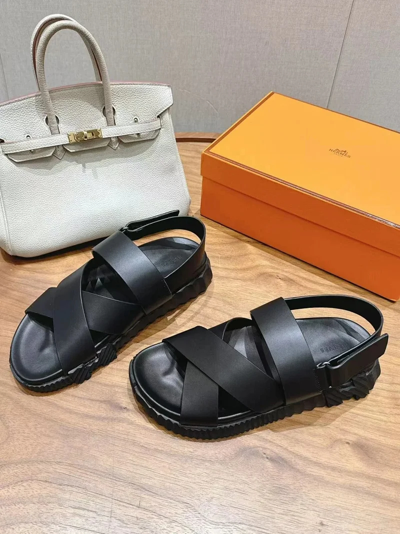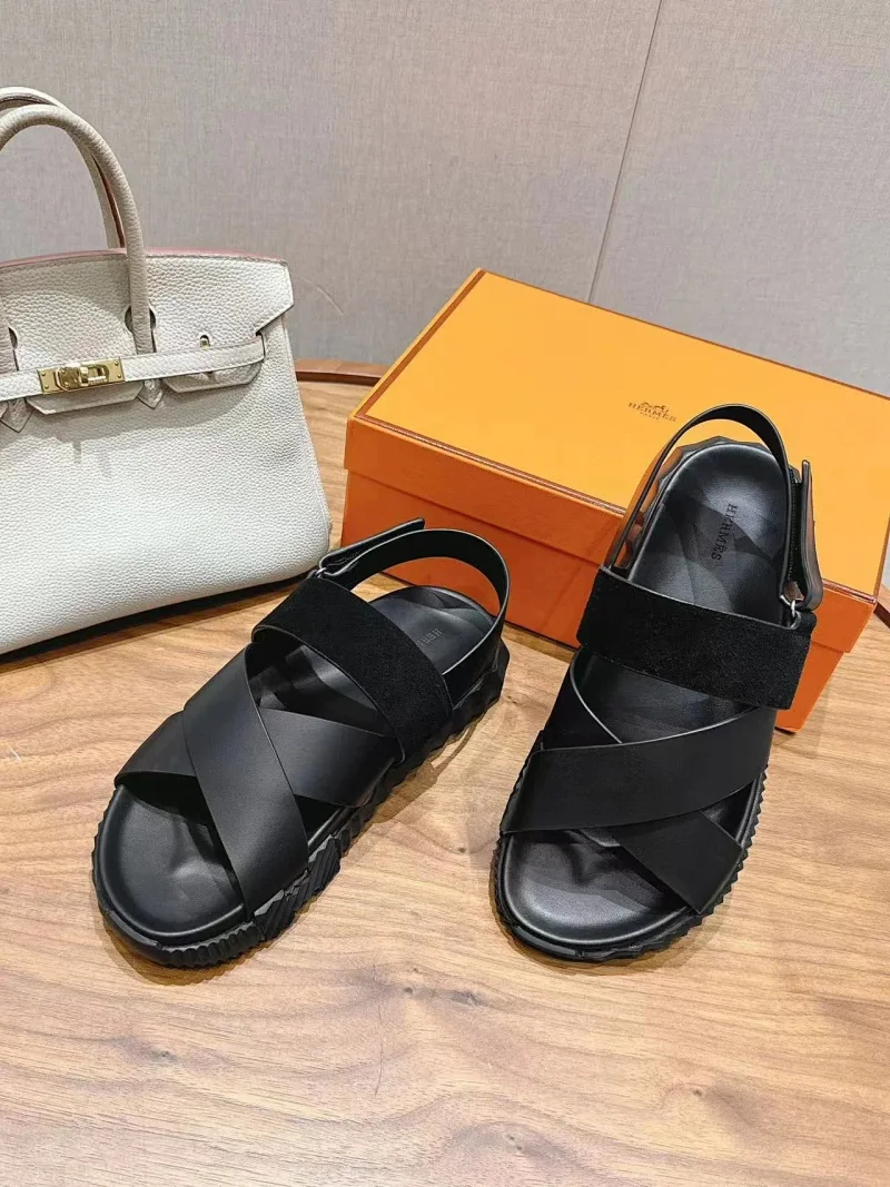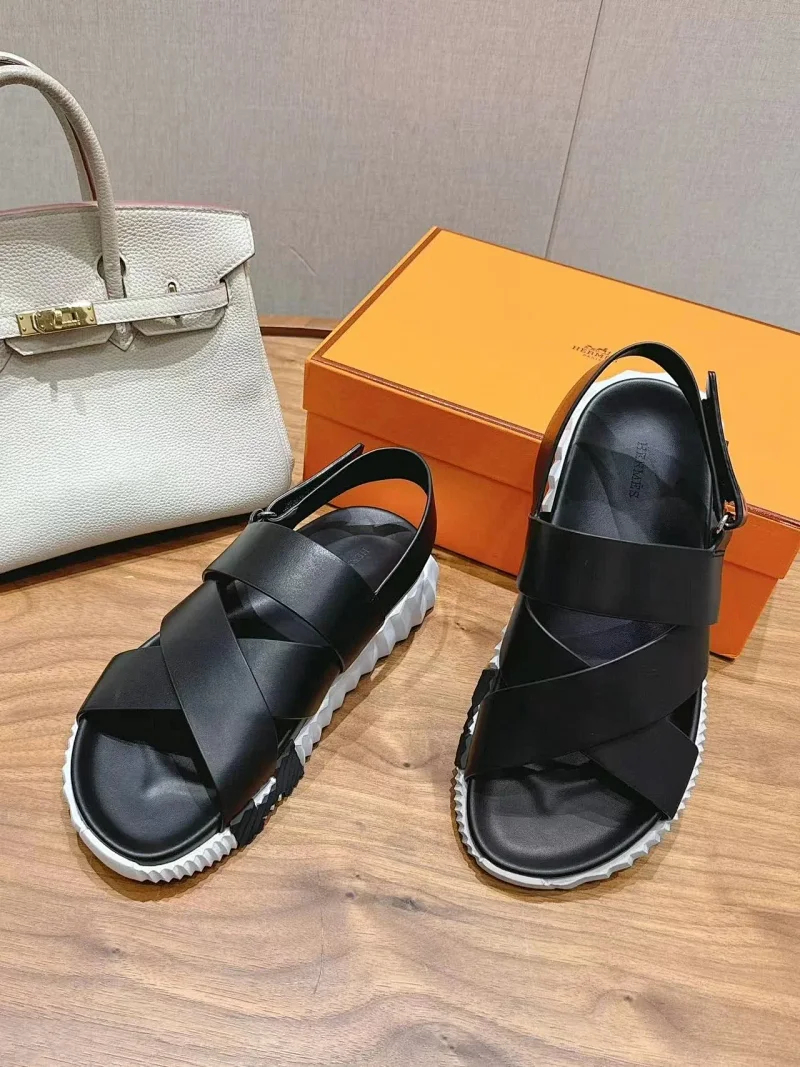 Hermes calfskin round-toe open-toe sandals-5569