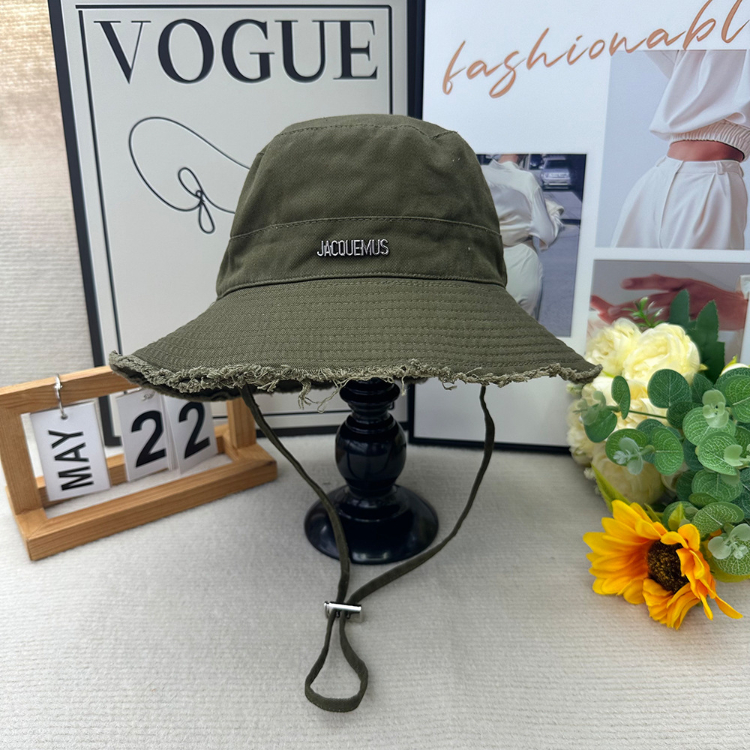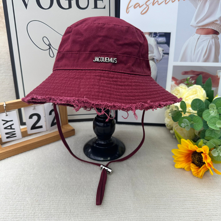 Jacquemus frayed-edge wide-brimmed bucket hat with drawstring-5982