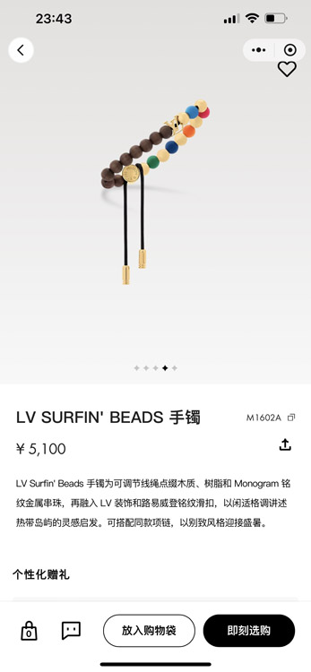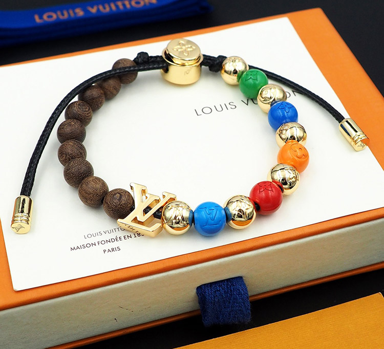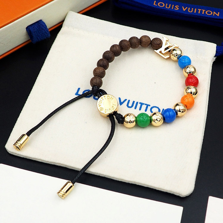 Louis Vuitton LV adjustable cord embellished wooden inscription metal beaded bracelet-3949
