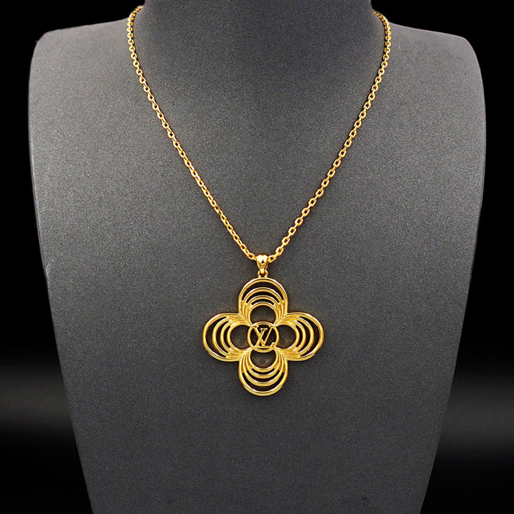 Louis Vuitton LV Floral Round Flower Hollow Metal Wire Outline Necklace-3571
