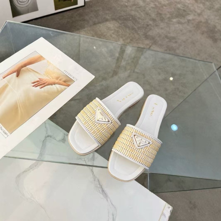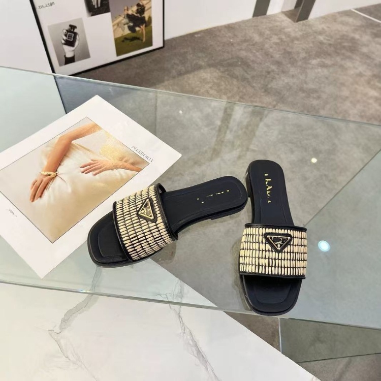Prada new handcrafted woven flat slide sandals-5737