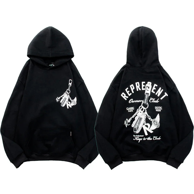 REPRESENT Printed Drawstring Hooded Jersey Sweatshirt-4497