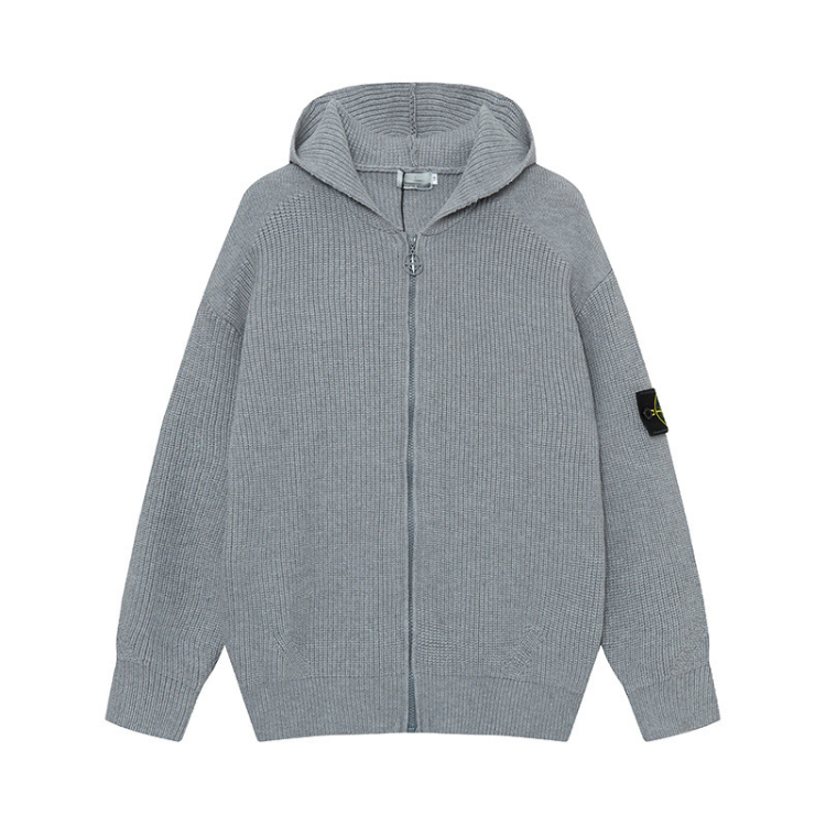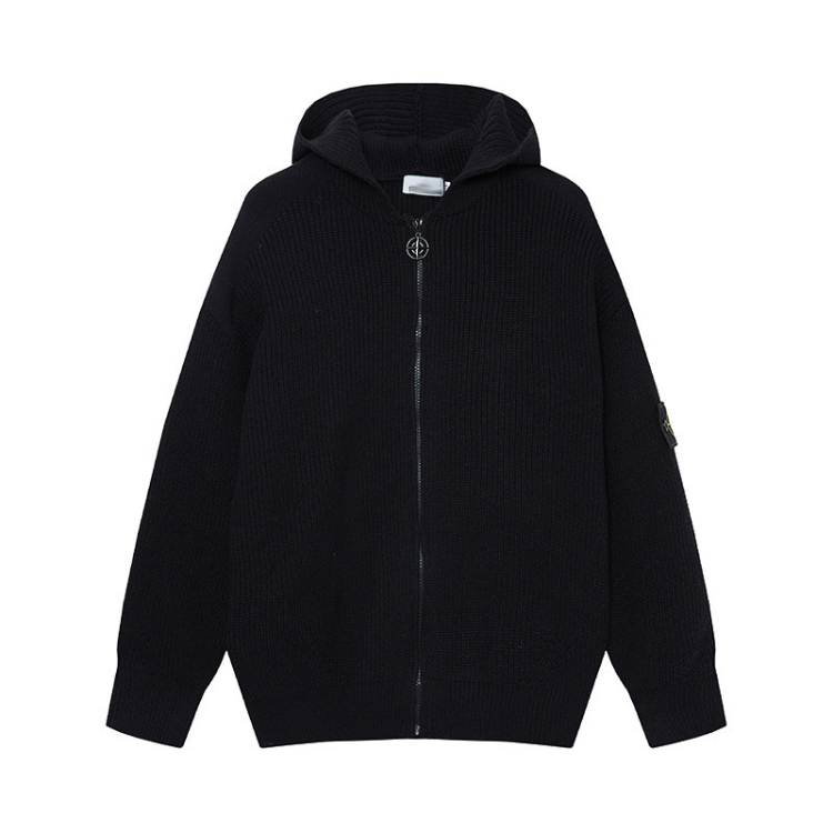 Stone Island cardigan sweater, solid color knitted long-sleeved zip-up jacket-5228