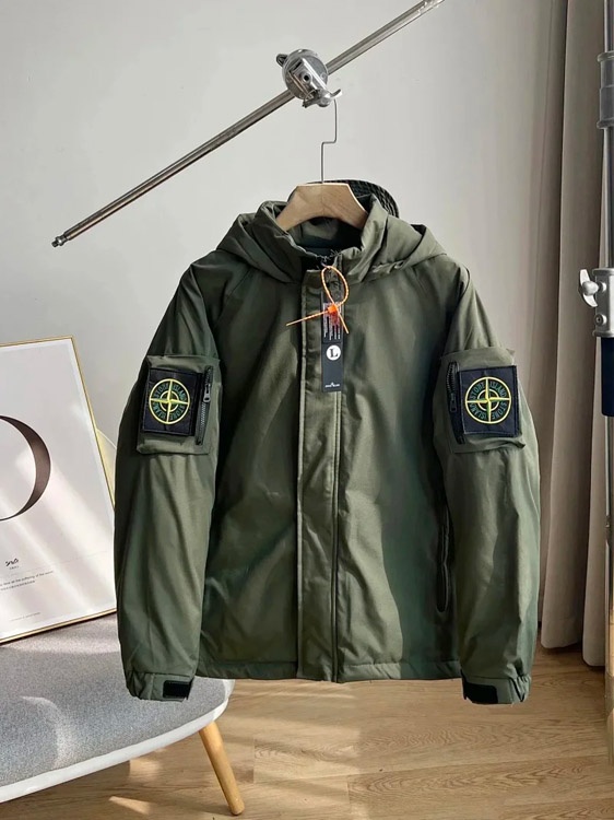 STONE ISLAND Stone Island Jacket Solid Color Logo Patch Hooded Zipper Long Sleeve-4303