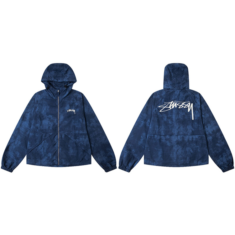 Stussy new casual loose-fitting letter print windbreaker hooded jacket-5274