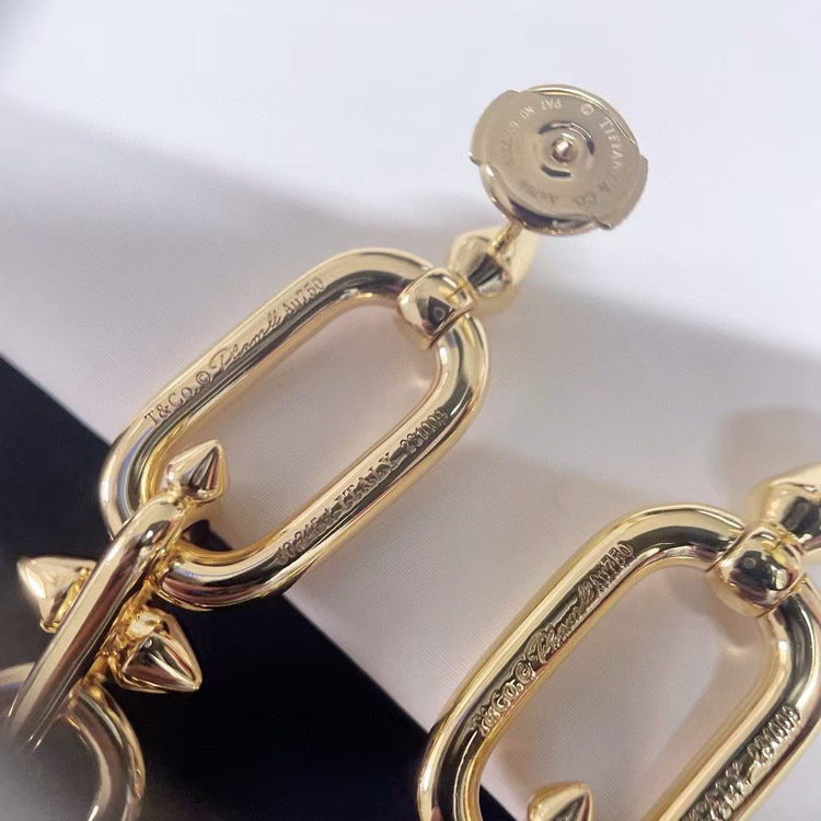 Tiffany diamond double ring chain earrings-4018