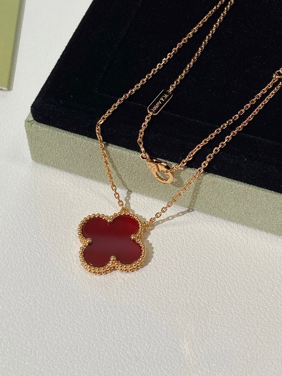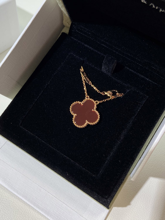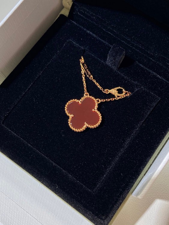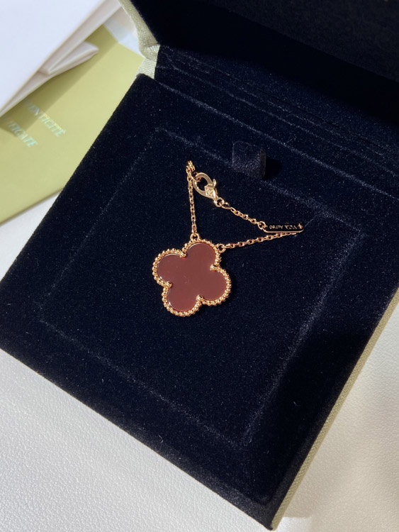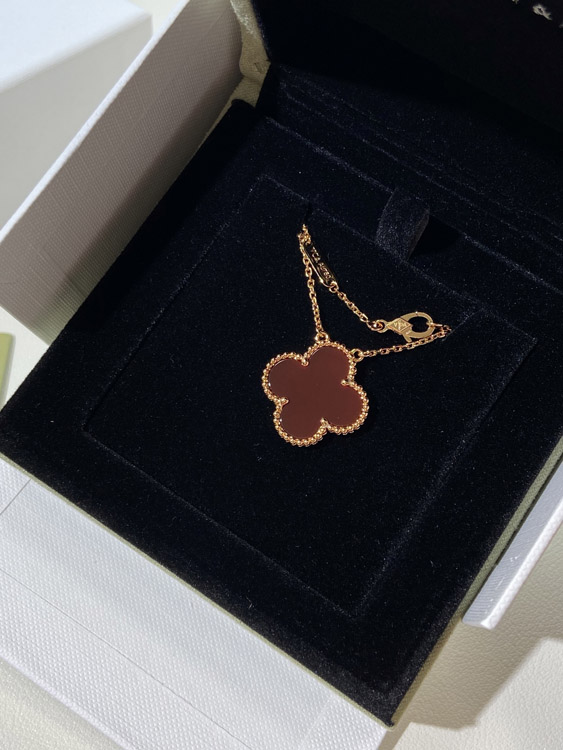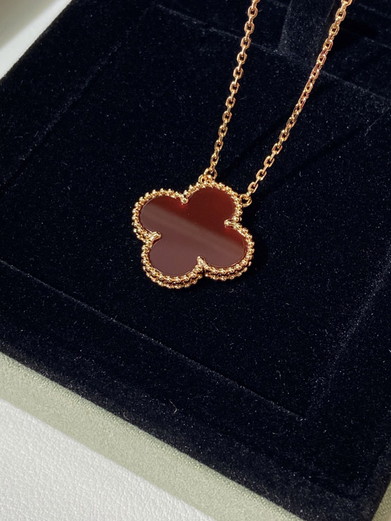 Van Cleef & Arpels four-leaf clover gold red obsidian wide necklace-3790