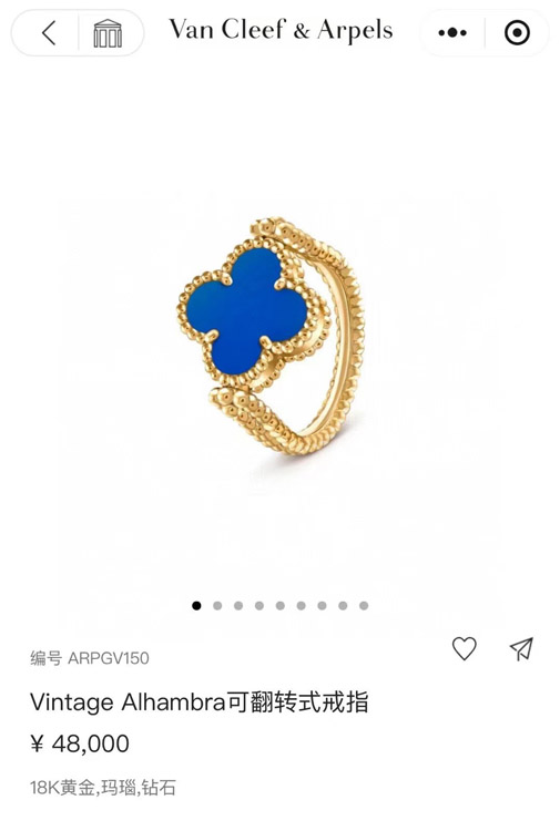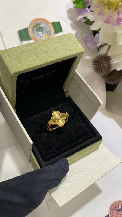 Van Cleef & Arpels Sapphire Agate x Gold Laser Clover Reversible Ring-3730