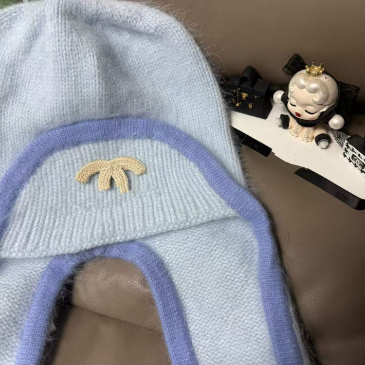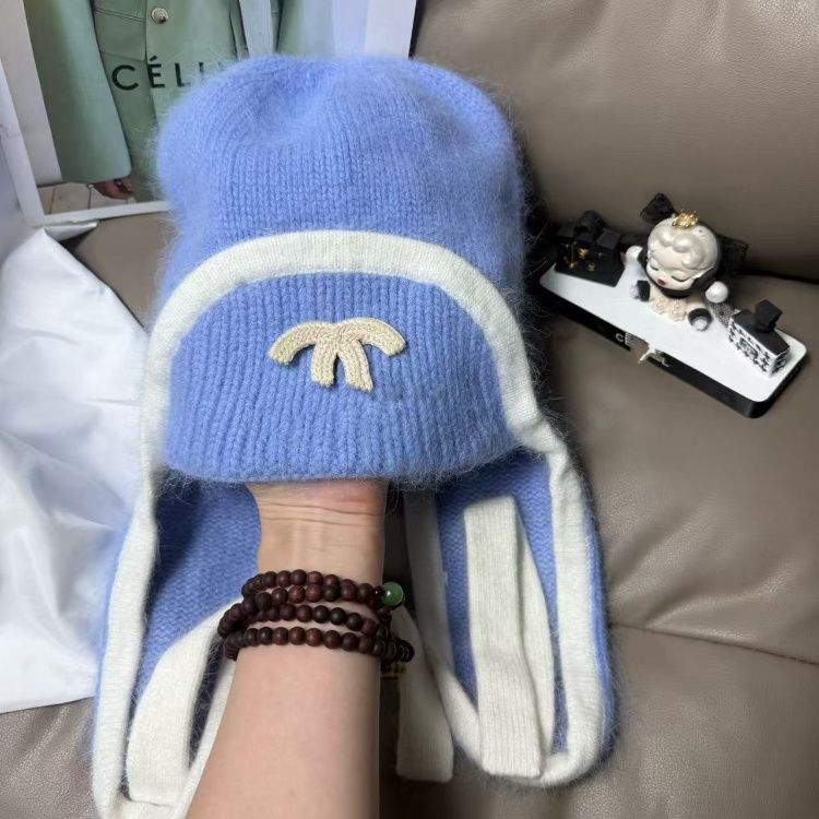 Chanel new rabbit fur warm knitted hat with ear flaps-5975