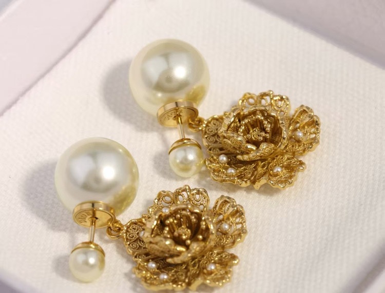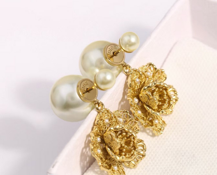 Dior large and small peony pearl earrings-3771