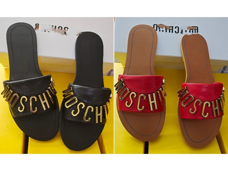 Moschino new genuine leather non-slip slide sandals-5675
